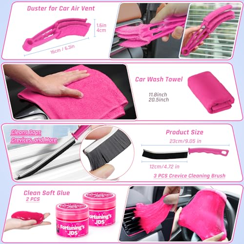 INTERIOR & EXTERIOR CLEANING – Upgraded pink car cleaning gel has strong adsorption power can be used in conjunction with a duster to remove dust on the surface of the car. With its 180° swivel head and extra long handle, this car windscreen washer is ideal for cleaning high spots and the edges of windows. 5 detailing brushes and other types of brushes are available for all your car detailing or cleaning needs. This car wash kit Including almost everything car washing popular and useful items.