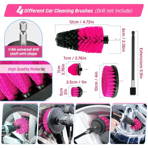 55PCS PINK CAR WASH KIT-1xHigh Power Car Vacuum Cleaner, 4x Drill Brush Attachment Set & 2 x Polishing Pads 2x large wash mitt& 1 x backer 1x hub brush, 2x car windshield cleaning tool, 3x replaceable microfiber pads, 2x towel, 1x tire brush, 1x duster brush, 1x air conditioner brush, 5x car detailing brush, 3x wire brush, 2x cleaning gel, 2x car wash sponge,1x cleaning brush, 1x storage bag. (Drill not include). This car detailing kit Including almost everything for the whole car cleaning and detailing.