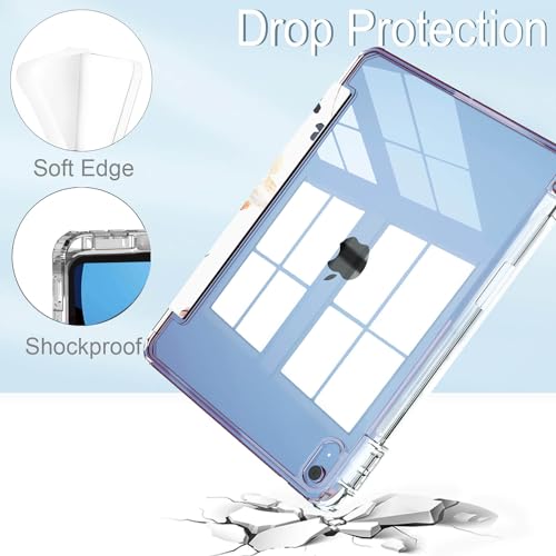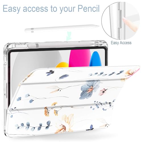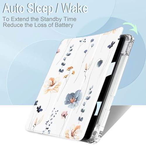 Feams for iPad (A16) 11th Generation 11 Inch 2025, iPad 10th Generation Case 10.9 Inch 2022, Slim iPad A16 Case Clear Back Cover with Pencil Holder & Auto Sleep, Simple Flowers