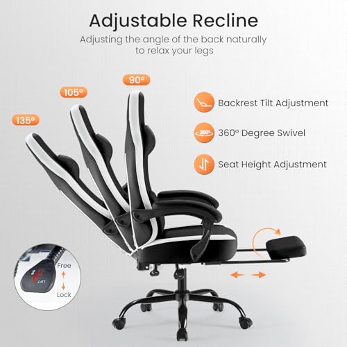 Adapts to Daily Needs – With the removable headrest and waist pillow, the waist pillow can also change the support position by sliding to adapt to your sitting position, which is ideal for playing time and working time. The back is adjusted from 90° in a focused position to 135° in a relaxed position, its height can be raised and lowered 4 inch, and the rugged 3-stage gas lift and upgraded mechanism ensure angle-fixed stability and support, providing reliable support at every angle.