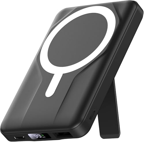 Azmuth Wireless Portable Charger with Stand, Slim 10000mAh Magnetic Power Bank for Magsafe, 22.5W Fast Charging Battery Pack Compatible with iPhone 17/16/15/14/13/12 Series