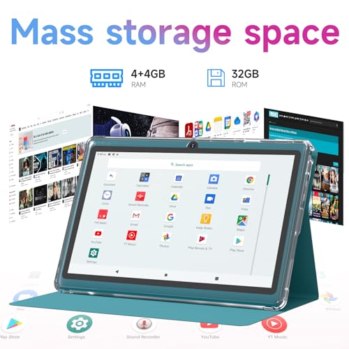 【8GB + 32GB】 1024×600 IPS HD Touch Screen, 8GB(4+4GB Expand) RAM+ 32GB ROM, Support 1TB Expand, You can storing photos, music and videos with additional micro SD card extensions.